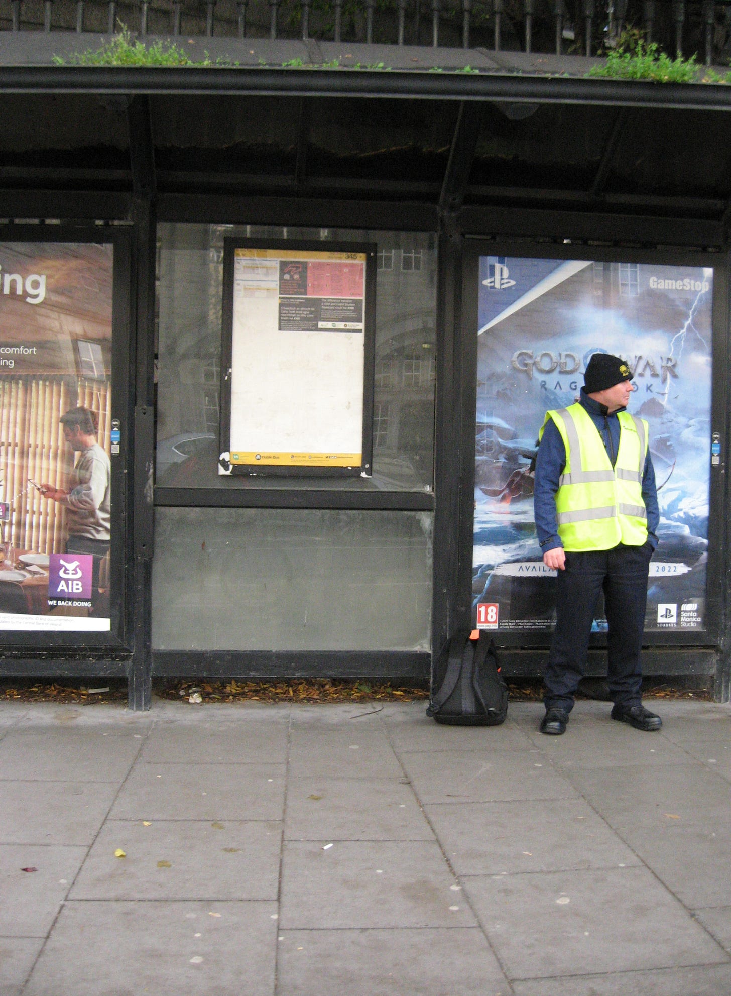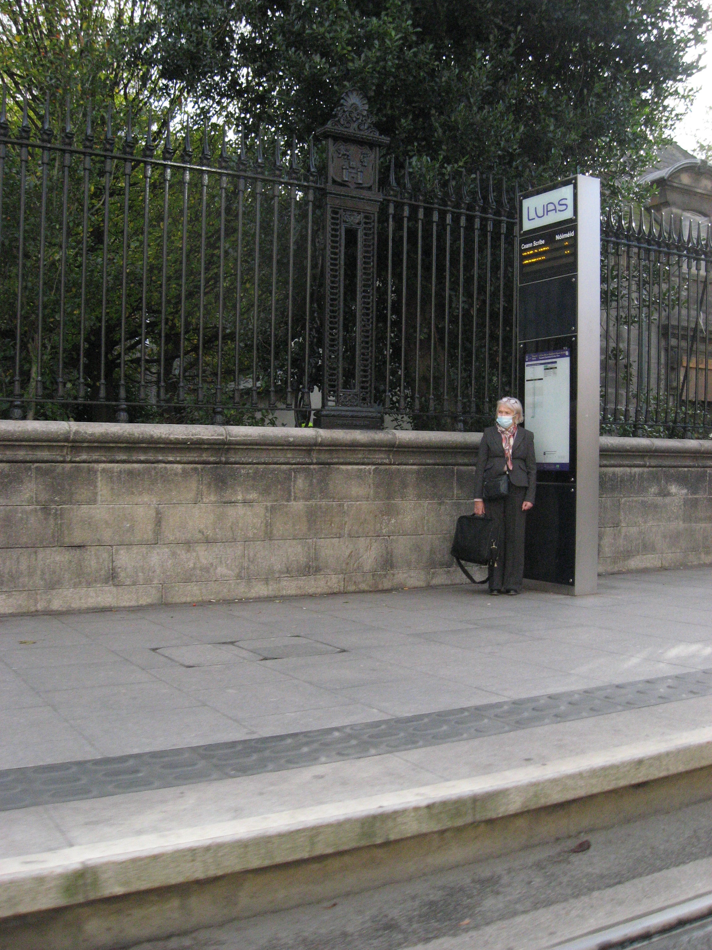 Luas Suit Woman waiting, whats in her case? a million euro hard cash? Brandon says BonBons maybe Lemon Drops.